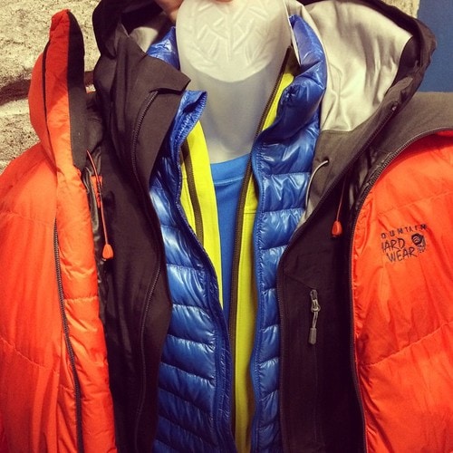 -For even colder conditions there are larger overcoats (or “belayers coat”) that can be used – the example from Dan was a huge orange puffy that stuffs into its own pocket so you can easily pull it out if the temperature drops (or if you’re belaying instead of ice climbing). Anything for this outer layer needs to be water resistant!