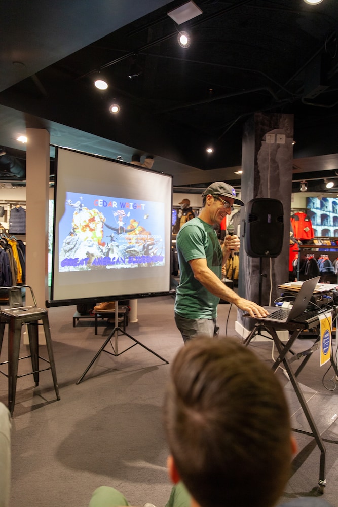 The night was made all the better because professional climber and filmmaker Cedar Wright was able to join us (thank you North Face for making that happen!). He showed us a few very official climbing moves (see the photos below) in the park and then entertained everyone with his stories of climbing in Antarctica, his previous dog Sufferpup and more.