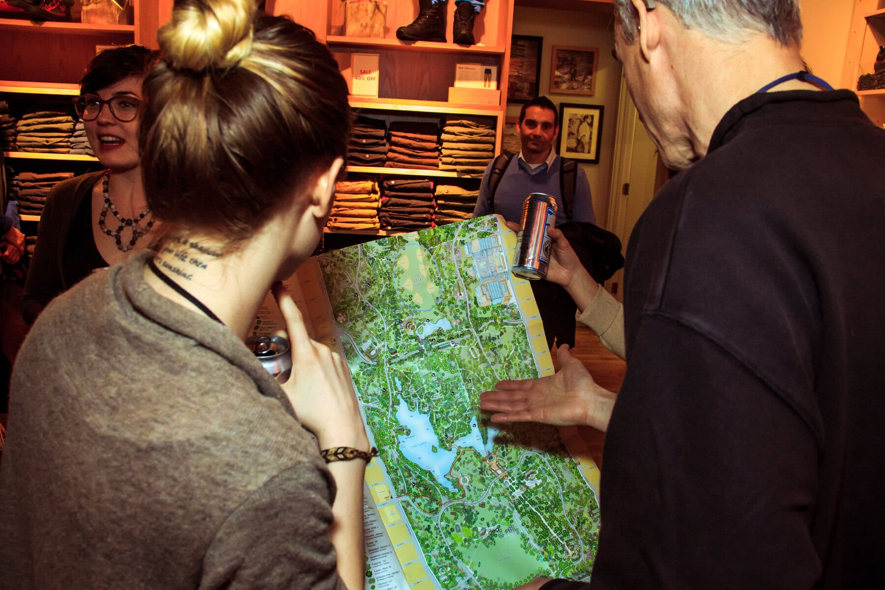 Our first event was silly and surprising, the New York Times mentioned us, someone brought outdoor-themed temporary tattoos, and a man who mapped every single tree in Central Park rolled in with one of the most incredible maps I’ve personally ever seen. We even kicked off our name tag station at this event – encouraging folks to share an ‘ask’ and a ‘tell” – based on the belief that everyone has something valuable to share.